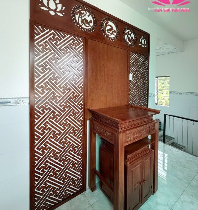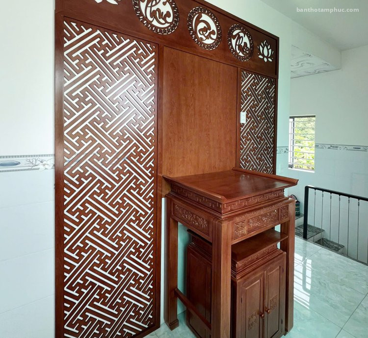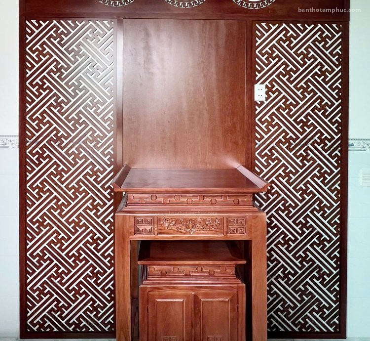 ✔️ Bộ bàn thờ gỗ sồi tự nhiên, hoa văn cổ truyền.