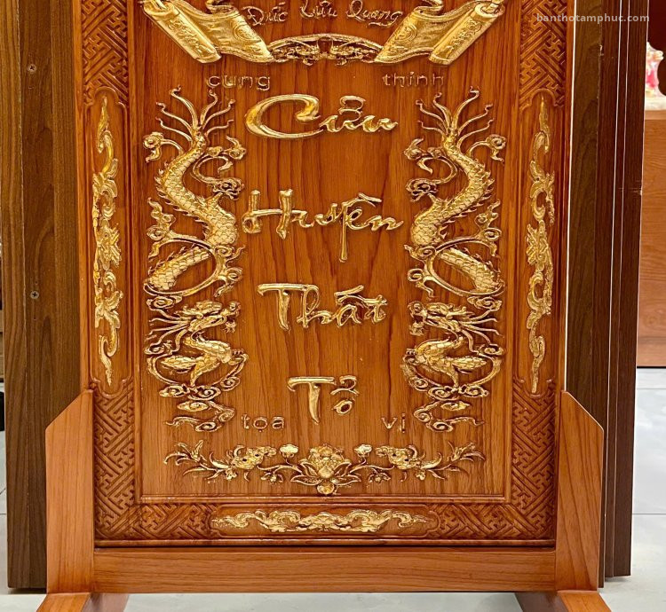 BÀI VỊ CỬU HUYỀN THẤT TỔ GỖ GÕ ĐỎ DÁT VÀNG.
